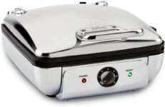 Cooking Performance & Design: Creates five delightful, thin, Scandinavian-style heart-shaped waffles at once within a durable chrome exterior housing.
